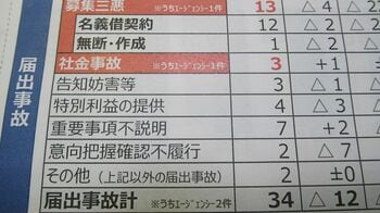 同支社所属の営業職員が70代の契約者の配偶者と懇意になり、銀行の通帳とパスワードを入手。約8カ月間に計38回も契約者貸付金や配当金を不正に引き出して金銭を取得した事故が同社の社内調査で判明している。