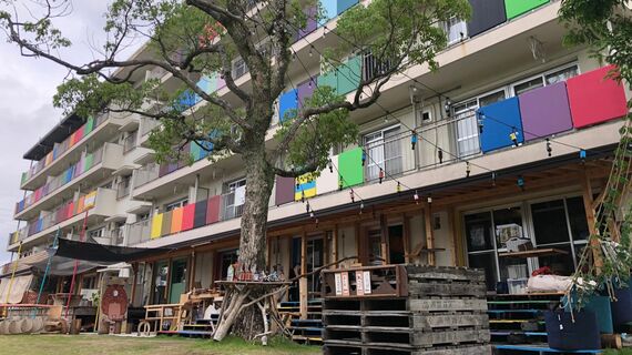 団地内に入ると1階には託児所、カフェ、ビール工房などがあり、ほかの階の部屋にはウクレレ工房、写真スタジオ、ドーナツ屋などさまざまな職種の人たちが店を構えている。