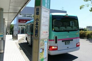 そこへ、東北新幹線「はやぶさ」のE5系と同じ配色のマイクロバスが現れて、少々驚く。うっかりしていたが、東日本交通が運行している廃止されたJR岩泉線の代替バスで、茂市駅前―岩泉病院間を基本的な運転区間とする一方。1日1往復だけ、宮古病院発着便が設定されているのであった。2時間以上も走る長距離系統であるが、需要があるのだ。
