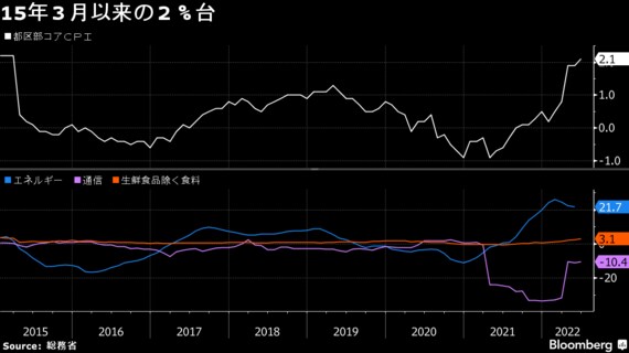 全国の物価の先行指標となる6月の東京都区部の消費者物価指数(生鮮食品を除くコアCPI)は前年同月比2.1%上昇となった。伸び率は前月の1.9%から加速し、消費税率引き上げの影響があった2015年3月(2.2%)以来7年3カ月ぶりに2%台に乗せた。総務省が1日発表した。