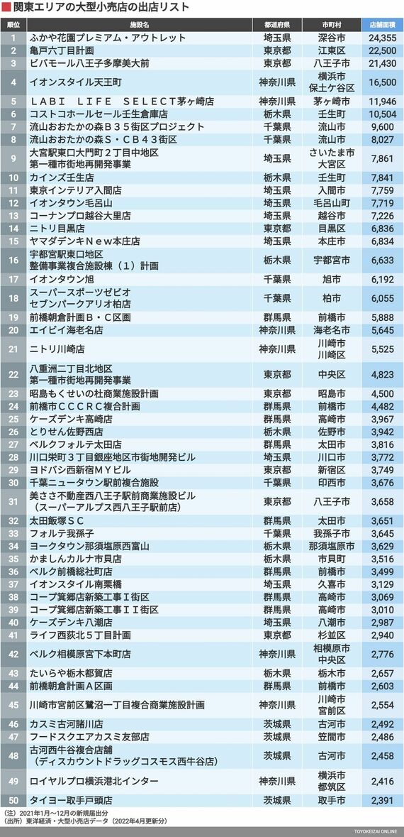 政治・経済・投資 データで見る「関東エリア」巨大店舗の出店リスト 店舗面積1位は埼玉県のアウトレットモール 2分で読める 公開日時:2022/07/30 05:40 田中 久貴 東洋経済データ事業局 フォロー 1/4 PAGES 2/4 PAGES 次ページが続きます:【店舗面積51位~100位の一覧】 3/4 PAGES 4/4 PAGES