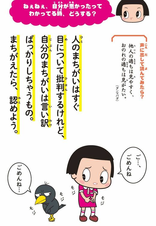 実を言えば、自分の悪いところを認めて反省するからこそ、成長もできるんだよ。誰かの欠点を得意になって正すより、自分のまちがいを見つめて、きちんと正せる人になりたいね。