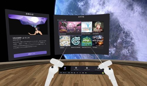 いきなりゲームのタイトルではなくて恐縮だが、「Pico Neo3 Link」を始めて最初に出てくるホーム画面に、まず心を射抜かれた。円形のリビングの外には宇宙空間が広がり、そこには巨大な地球が横たわっている。思わず1時間ほどリビングを歩き回り、いろいろな角度からわがふるさとを眺めた。