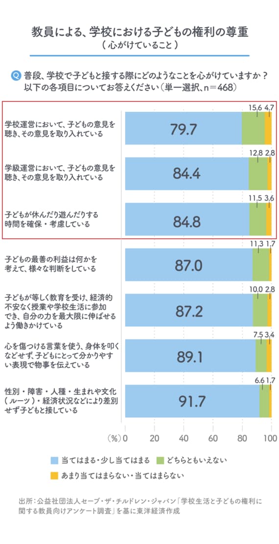 教員の3割が「子どもの権利」の内容知らず、誤って理解している回答も 教員調査、約半数が「子どもの権利教育」せず