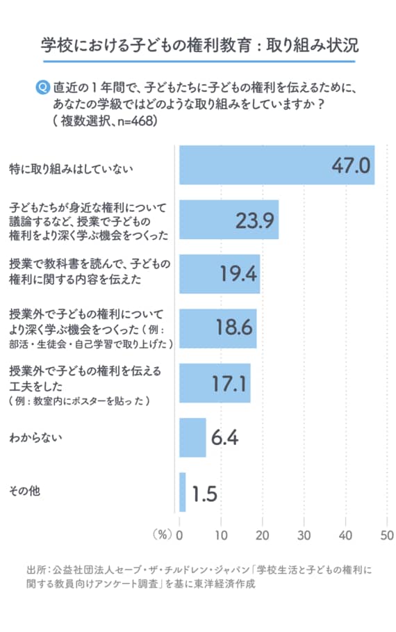 子どもの権利教育、約半数が「特に取り組みはしていない」