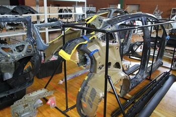 部品点数の削減は徹底している。後方のフロア回りにはアルミニウム合金の大型鋳造部品を採用。ボディ部品のプレス加工には、板厚や強度の異なる鋼鈑を溶接する新しい工法を車体外側と室内側ともに採用、軽量化にもつなげている。