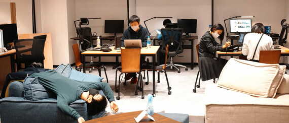 「私たちの施設は、学校外の同世代や日常生活でなかなか会えないような大人たちに会うことができ、自然にコミュニケーションが発生する点もいいところだなと。とくに地方では子どもたちがエンジニアやデザイナーになろうと思っても、身近にロールモデルがおらず、親や学校の先生がどう機会提供して導いてあげればよいかわからないケースも多いのですが、施設ではデザイナーを目指す高校生と地域の現役のデザイナーがこたつで気軽におしゃべりしながら将来のことについて語り合う場面なども見られます」