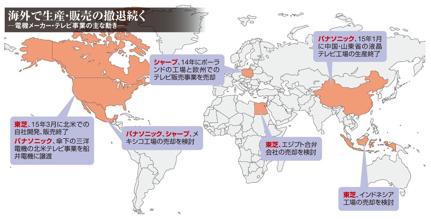2005年には世界シェア13%を握っていたシャープも、2014年末にポーランドの工場を売却。欧州でのブランド使用権をスロバキア企業に供与して収益を得るビジネスモデルへの転換を図った。