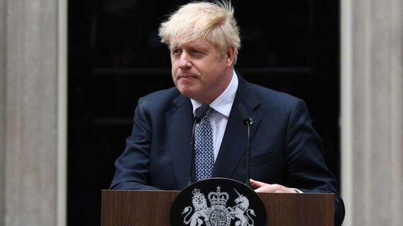 7月7日、辞任を発表したジョンソン英首相(写真:Chris J. Ratcliffe/Bloomberg)
