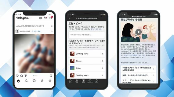 小俣 利用者の皆様にプライバシーに関する懸念があることは承知しています。一方で、「プラットフォームは個人情報を外部に売っている」という誤解もあるようです。Metaとして強調したいのは、収集した情報をどこかに売り渡すことはないということ。サイバーセキュリティーの確保や広告効果の測定のため、一部のパートナー企業に必要最低限の情報は共有しますが、厳格な制限を設けており、個人の特定に利用できる情報を許可なく提供することはありません。