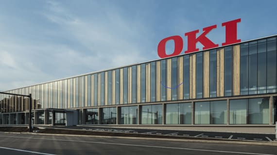 工場内に足を踏み入れると、ほんのりと杉の香りが漂ってきた。今年4月。埼玉県本庄市に完成した、情報通信システムなどを展開するOKIの本庄工場には、外壁や柱などに無数の木材が散りばめられている。工場内における木材使用量は206㎥。地元で産出した秩父杉を使用している。