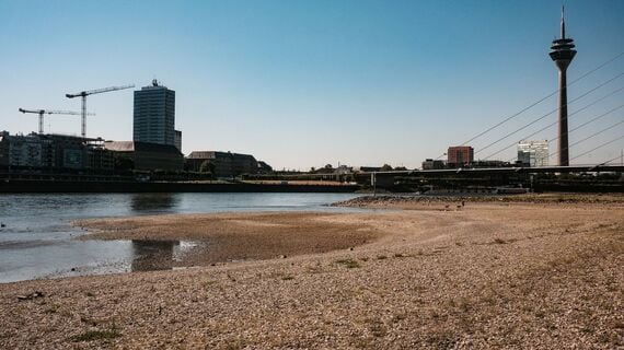 ドイツ水上輸送の要であるライン川の水位は猛暑による渇水で低下しており、今後、船舶の航行不能となる水準付近まで低下するとの見通しが示されている。