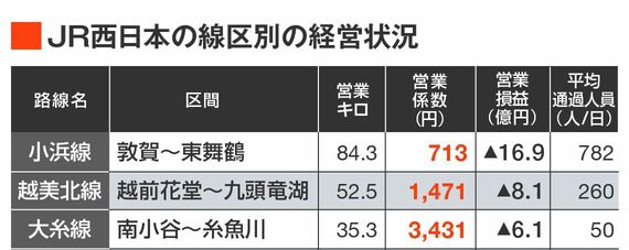 線区の具体的な収支状況を示すのは「営業係数」という項目だ。
