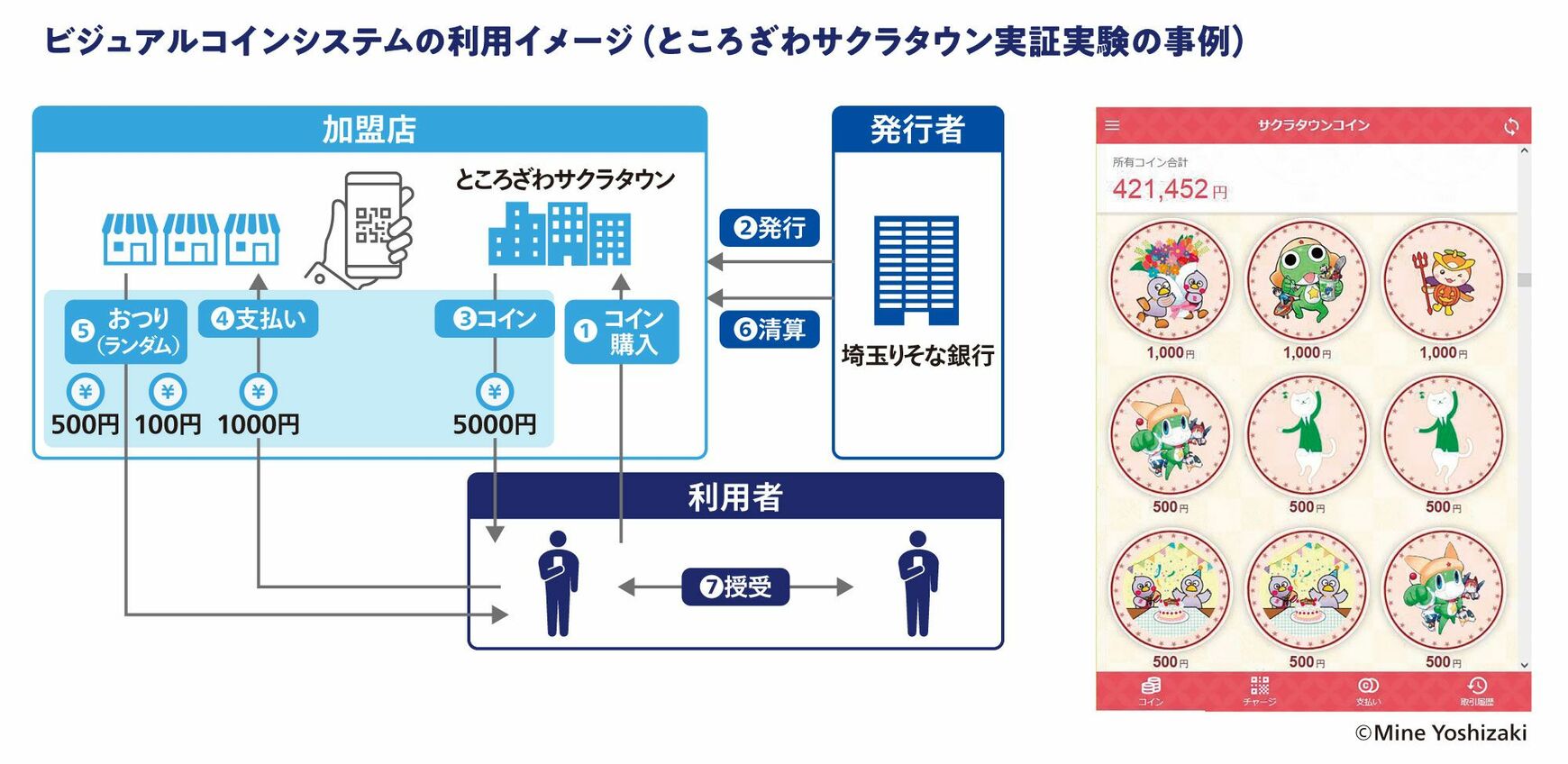 埼玉りそな銀行とKADOKAWA、富士通と連携し、昨年11月から今年4月にかけて埼玉県所沢市の大型複合施設「ところざわサクラタウン」で行った電子通貨決済の実証実験では、埼玉県のマスコットや漫画のキャラクター画像などをつけた「サクラタウンコイン」を発行。特定店舗で利用するとランダムなコインでおつりがもらえる仕組みを実現し、利用者はおつりでどんなコインがもらえるのか、もらったコインをコレクションするなどの"楽しみ"が生まれ、「消費のエンタメ化につながる取り組み」だと、佐藤氏は評価する。