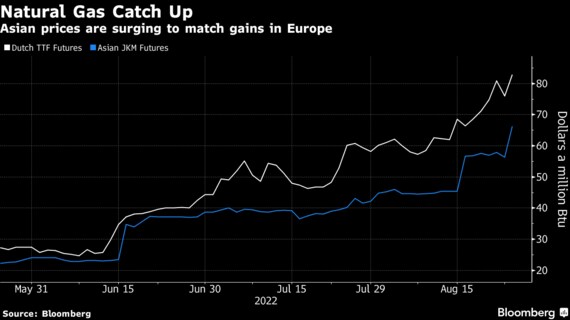 原題:Natural Gas Soars in Europe, Asia as Crisis Heats Up Competition(抜粋)
