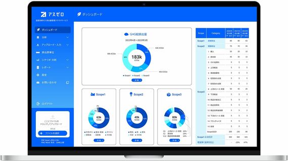 アスエネは2021年8月、独自開発のAI(人工知能)を活用してCO2排出量を可視化する法人向けクラウドサービス「アスゼロ」を発売。電気料金の請求書やガソリン代のレシートなどをスキャンするだけでCO2排出量の算定・報告を自動化できる。