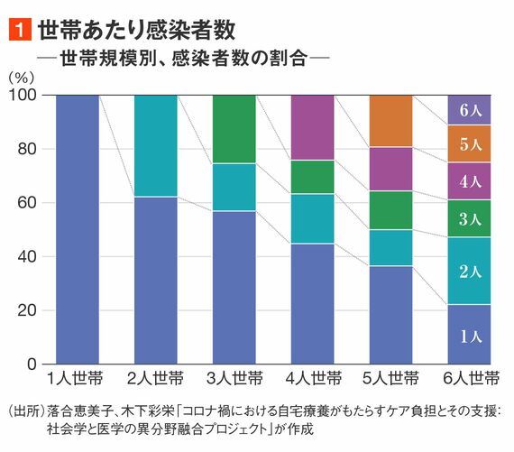 同居の世帯員数が増加するほど、世帯内感染を防ぐ、つまり感染者を1人に抑えるのは難しい(図1)。
