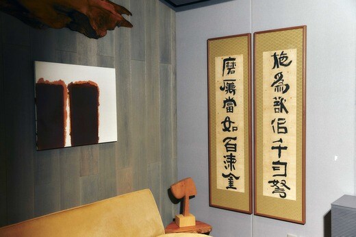 ジョージ・ナカシマのテーブルには彼のワークステーションが置かれ、その背面上部にはユン・ヒョンクンの抽象画(3種類の蛍光絵の具の塊のみが描かれた絵)が飾られている。壁には20点以上の作品が掛けられており、その多くはパク・スグン、チャン・ウッチン、ナム・ジュン・パイクといった、20世紀を代表する韓国人アーティストの作品だ。
