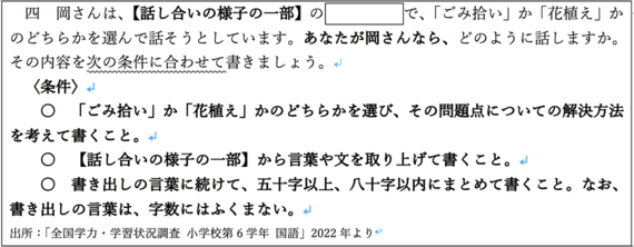 小学校国語で47.7%と2番目に正答率の低かった設問がこれと関わる。1の四の設問である。