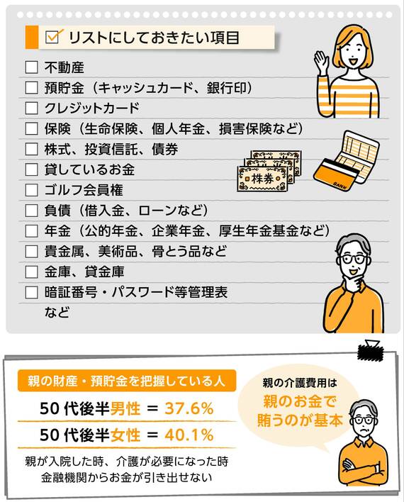 今後のこと(介護費用、医療費など)も考えると、親の財産を把握しておいたほうが安心です。以下では、丁寧に説明しましょう。