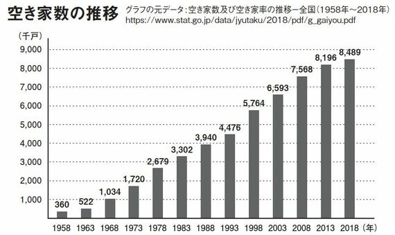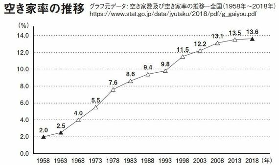 こうした現象の背景には、いわゆる「空き家問題」があります。総務省統計局が5年に一度発表している「住宅・土地統計調査」によると、2018年時点で全国の空き家の数は848万戸。空き家の割合は全住宅の総数の13.6%といわれ、この数は今後もどんどん増える見込みです。
