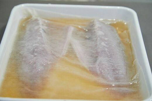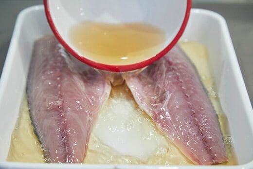 20分以上漬けると、このようにさばの身が白く変色してきます。(写真:吉澤健太)
