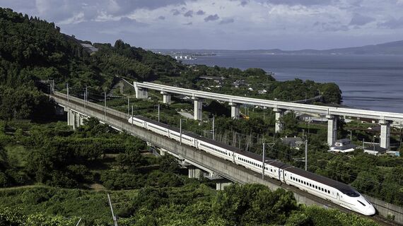 九州新幹線に乗るからには800系は落としたくない。今や主流はN700系で、グリーン車がない古参の800系は各駅停車の「つばめ」運用に回されているが、個性では新幹線中の白眉だ。乗り込むと、黒に包まれたデッキの先に明るい客室が開けて、木製の背板に草花文様のクッションを組み合わせた特有の座席が目に飛び込む。号車別の色柄によって雰囲気は号車によりガラリと変わる。