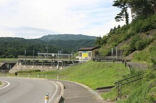 この区間は東日本大震災以前は海沿いの松原の中を走っていたが、津波で防潮堤、松原、鉄道線路、国道、そしてそのさらに内陸側にある集落まですべて破壊しつくされた。震災直後に訪れたことがあるが、瓦礫が山積みにされていたことを覚えている。