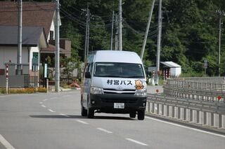 続いて、海バスが現れた。愛称にふさわしいラッピングが施されている。ワゴン車の村営バスとスクールバスとの役割分担はできているが、どちらも席が埋まりきっているわけではない。