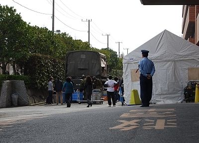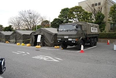 (5)本庁舎横の駐車場には陸上自衛隊の指揮所が置かれている
