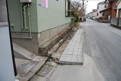 (7)パタリと倒れたブロック塀。もし歩行者がいたら一大事だった