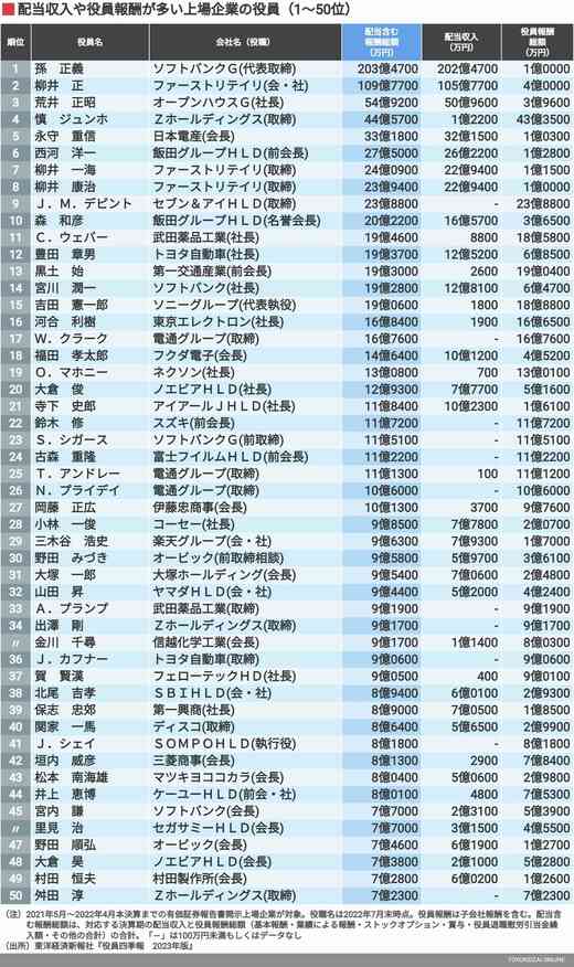 政治・経済・投資 #賃金・生涯給料ランキング 前の記事 次の記事 配当含む「年収1億円超」経営者ランキング500 孫正義氏は200億円超、柳井正氏も100億円超える 2分で読める 公開日時:2022/10/09 06:00 『役員四季報』編集部 フォロー 1/11 PAGES 2/11 PAGES 次ページが続きます:【次は51~100位】 3/11 PAGES 4/11 PAGES 5/11 PAGES 6/11 PAGES 7/11 PAGES 8/11 PAGES 9/11 PAGES 10/11 PAGES 11/11 PAGES