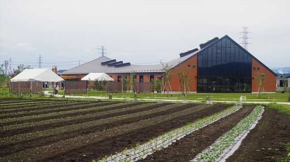 奥に見える建物は、半分が野菜の売店となっているマルシェ、もう半分が野菜をメインに使ったレストランだ。それもそのはず、運営はマヨネーズとドレッシングのトップメーカーであるキユーピーなのである。