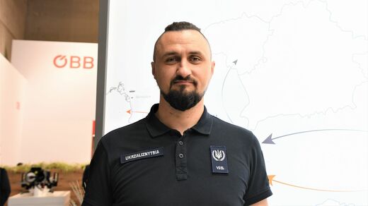 世界最大の鉄道見本市であるイノトランスには、各国の鉄道会社や鉄道メーカーのトップが一堂に会する。従業員数25万人、線路の総延長2万2300kmという巨大な国営企業、ウクライナ鉄道のオレクサンドル・カムイシンCEO(最高経営責任者)も会場に姿を見せた。大企業のトップに似つかわしくないポロシャツ姿というカジュアルないでたちは、Tシャツ姿でおなじみのゼレンスキー大統領譲りだ。