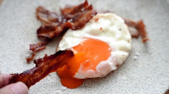 ベーコンエッグは朝食の定番。カリカリのベーコンと濃厚な卵黄が混ざりあう官能的な料理で、ジョン・スタインベックの短編小説『朝食』でも物語を象徴する料理として登場します。