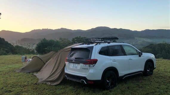 「とある里山」で、朝をむかえた。スバル「フォレスター SPORT」を支えにして張ったカーサイドテントの中で午前5時過ぎに目を覚まし、テントの外に出ると、房総の山間部の空気が実にやさしい。