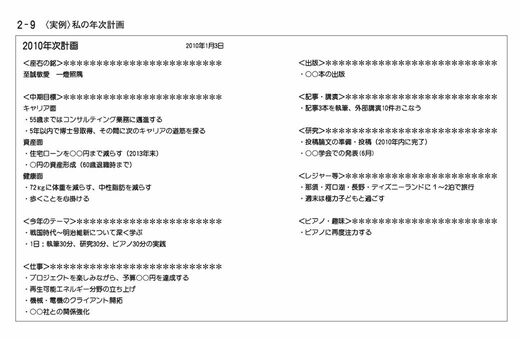 次に、年次計画です。40代の頃は毎年つくっていました。次の図が、2010年の私の年次計画です。
