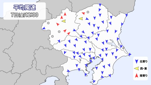 正午の風を振り返ると、北よりのところがほとんどです。