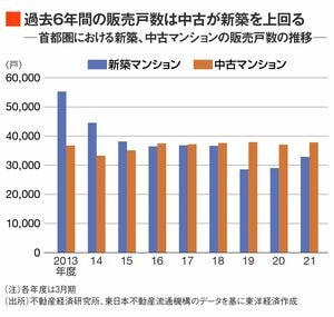 新築マンションの供給が制限される中、消費者の受け皿となり、販売戸数を伸ばしているのが中古マンションだ。首都圏の中堅デベロッパー幹部は「長期的な目線で見て市場拡大が見込めるのに、やらない手はない」と話す。2021年の中古マンションの成約件数は3万7828件と、10年前と比べて3割弱増えている(東日本不動産流通機構調べ)。
