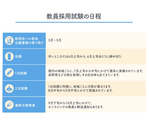 1次選考は、長野県内小・中学校の学級担任経験がある講師で小学校教諭受験者の場合は一次選考が免除になります(令和5年度)