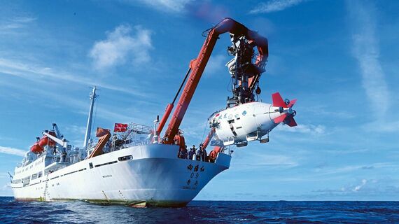 中国は深海探査に力を入れる。2017年、西太平洋のヤップ海溝での深海探査の様子(写真:新華社/アフロ)