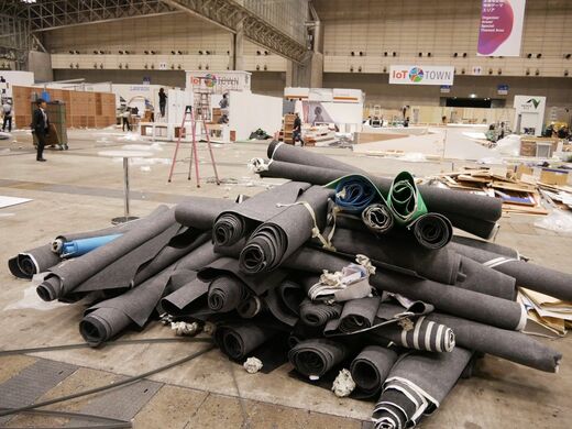 かつてブースの撤収作業を取材したことがあったが、閉幕からわずか5時間で、巨大なブースなどがすべて撤去され、その多くの材料がトラックで廃棄物として搬出されていった。サステイナビリティには、ほど遠い状況である。
