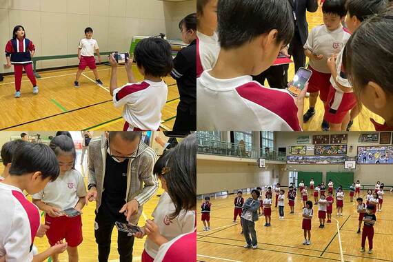 釜石小では、3年生と4年生の計30人が、20秒ほどのダンスの習得に挑んだ。プロダンスリーグ「D.LEAGUE」で活躍するTAKUMI氏がグループごとに個別指導を行い、指導を待っているグループはAIスマートコーチを使ってお手本の動画を見ながら自習する形を取ったが、児童たちは協力しながら撮影や動画比較、アドバイスを行って練習を進めたという。
