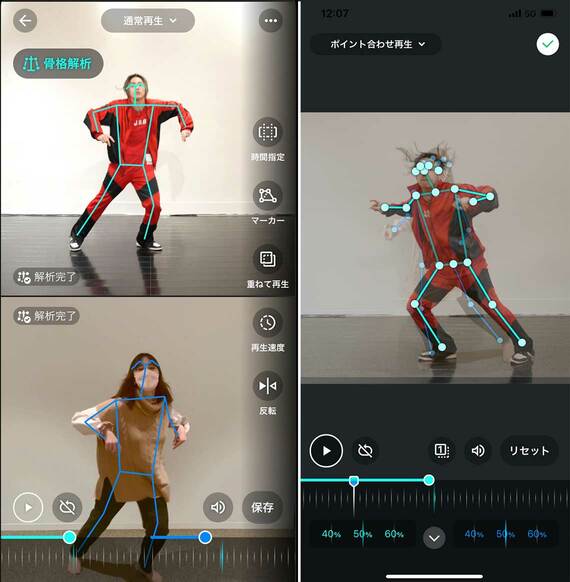 アプリに用意されているものだけでなく、例えば教員や先輩など身近な人のフォームを撮影した動画をお手本にすることもできるし、過去の自分の動画と比較して成長を確認することも可能だ。