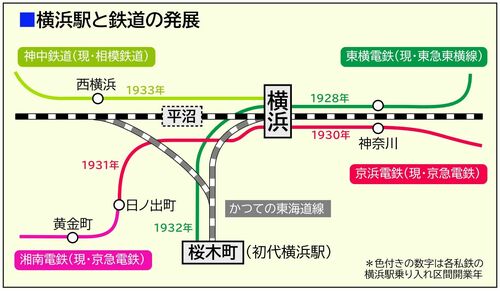 3代目横浜駅の建設は震災復興と同時に進められたこともあり、未完成のまま開業する。そのため、京浜線ホームは移設が間に合わず、東京横浜電鉄や京浜電鉄も開業から遅れて乗り入れを果たしている。横浜駅の中央停車場計画は、1933年に神中鉄道が乗り入れたことで完結した。