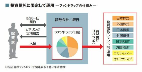 ファンドラップとは、顧客が金融機関に資産運用を「一任」するサービスだ。顧客が求めるリターンや許容できるリスクを基に金融機関が資産配分を考え、投資信託の売買や運用を行う。