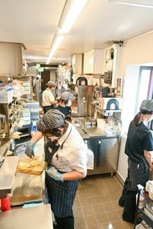 一方キッチンとバックヤードのスペースは細長く、一般的な店舗に比べればやはり狭い。店長の菊地信寿氏によれば「キッチンに立つと2〜3歩しか動けないので、1人が1つのポジションを担当している」など、オペレーションにはひと工夫必要だ。ドライブスルー店としても2店舗目であるため、トレーラー型ドライブスルー店としてのノウハウ確立が今後の店舗展開のカギを握る。