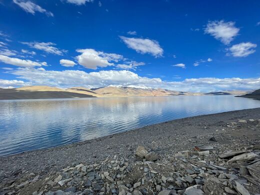 ツォ・モリリ湖畔。人の手が入っていない自然の美しさが感動を誘う(筆者撮影)