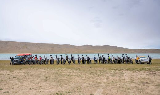 モト・ヒマラヤ2022参加者と、万一に備えて随行するサポートカー(写真:ロイヤルエンフィールド)