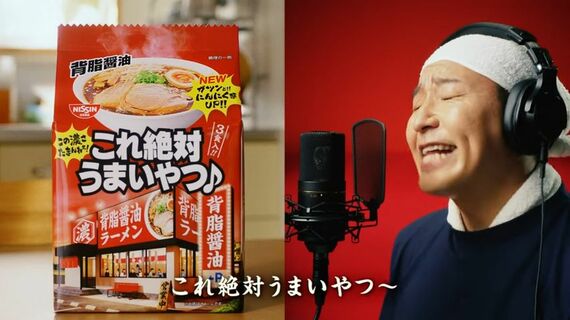 国道沿いのラーメン屋で食べるような“濃くてうまい”味わいが特長の袋麺を訴求するCMで、引き続きお笑いコンビ・チョコレートプラネットがCMキャラクターを務めている。CMは左右に分割された2画面で展開。画面右側ではラーメン屋の店主役の長田庄平が「♪これ絶対うまいやつ~」とマイクに向かって歌い上げる様子、画面左側には汗をかきながら夢中で商品を味わう3人家族が映される。